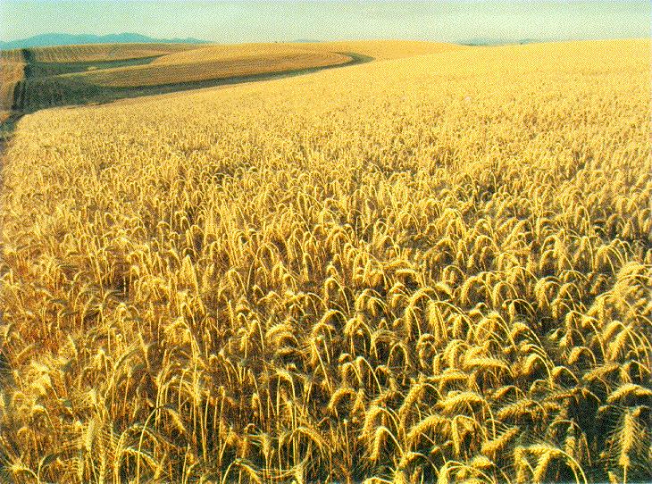 Narr.2: It was grand. Level, russet here and there, heavy-headed, wide as a lake, and full of multitudinous whispers and gleams of wealth, it stretched away before the gazers like the fabled field of the cloth of gold.