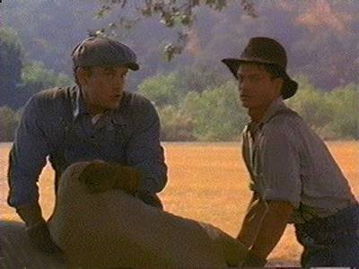 Lennie said craftily— "Tell me like you done before." "Tell you what?" "'Bout the other guys 'an about us." George said, "Guys like us got no fambly. They make a little stake an' then they blow it in. They ain't got nobody in the worl' that gives a hoot in hell about 'em——" "But not us," Lennie cried happily. "Tell about us now." George was quiet for a moment. "But not us," he said. "Because——" "Because I got you an' ——" "An' I got you. We got each other, that's what, that gives a hoot in hell about us," Lennie cried in triumph. |